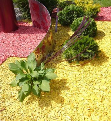 Декоративная щепа регулярно используется в ландшафтном дизайне для декорирования и мульчирования садов и участков. Сама щепа окрашена красителями на натуральной основе, которые не смываются водой и устойчивы к выгоранию на солнце. Сам цвет получается ярким и насыщенным. Средний срок службы декоративной щепы составлет приблизительно 2-3 года. После укладки на землю, со временем нижние слои щепы начинают понемногу перегнивать, улучшая состав почвы, но при этом свои декоративные свойства она сохраняет на протяжении всего срока службы. Сама же основа - это щепки хвойных пород деревьев фракции от 2 до 4 сантиметров. Чтобы добиться максимального мульчирующего эффекта и 100% отсутствия сорняков, рекомендуем вам укладывать коричневую декоративную щепу на подложку из геотекстиля или листвиничного гумуса. Оптимальная толщина укладки составляет 3-4 сантиметра. Купить цветную коричневую щепу можно в мешках объемом 60 литров, цена зависит от количества - чем больше объем, тем ниже цена. 60 литрового мешка при указанной толщине засыпки хватает на 1 квадратный метр территории.